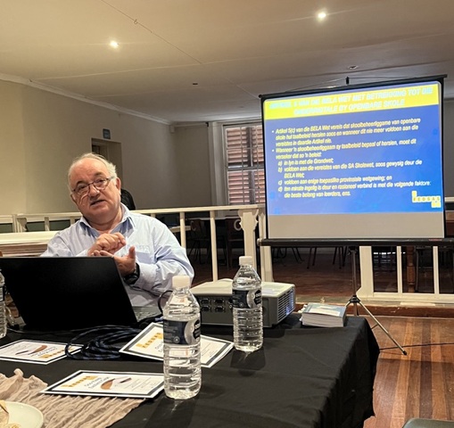 Na bespreking van ‘n paar VLV-sake en tak-projekte, stel Petro Marx die spreker van die dag bekend nl. Pierre de Villiers, FEDSAS Provinsiale Bestuurder. Hy het 37 jaar ondervinding in die Onderwys en lewer op dié manier steeds ‘n bydrae, selfs na sy aftrede. Die onderwerp van die dag is die omstrede BELA Wet van 2024, waarvan die proklamasie kennisgewing op 24 Desember 2024 in die Staatskoerant gepubliseer is. Beide die Suid-Afrikaanse Skolewet van 1996 en die Wet op Indiensneming van Opvoeders van 1998, is deur BELA gewysig. Hierdie gewysigde wetgewing het reeds in Januarie 2025 in werking getree en is opgeneem in die Nuwe SA Skolewet van 2025. Die regering publiseer nog van tyd tot tyd regulasies wat verdere riglyne gee oor hoe die Aangepaste Skolewet op grondvlak toegepas moet word.