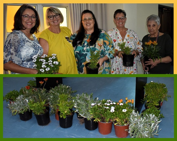 Elize, die eienaar van die plaaslike Fijnbos kwekery het ‘n hele klompie by-vriendelike plante geskenk. Gelukkig lede en gaste met kolle agterop hulle stoele het elkeen ‘n plant ontvang.