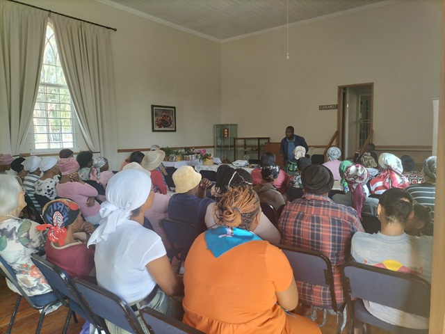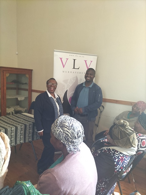 Suster Frances Fass en mnr. Tiaan Galant van Murraysburgse Gesondheidsdienste deel belangrike inligting met die 44 teenwoordiges. Hulle bespreek belangrike probleme rondom afsprake, pasiënte se persoonlike inligting asook dié van hul lewensmaats. Die dames word ook ingelig oor al die dienste wat beskikbaar is en hoe hulle daarvan gebruik kan maak. Mnr. Galant sê dat hulle oop is vir klagtes, want hulle wil baie graag probleme uit die weg ruim. Net so is dit ook vir hulle lekker om briefies met komplimente te ontvang vir goeie diens!
