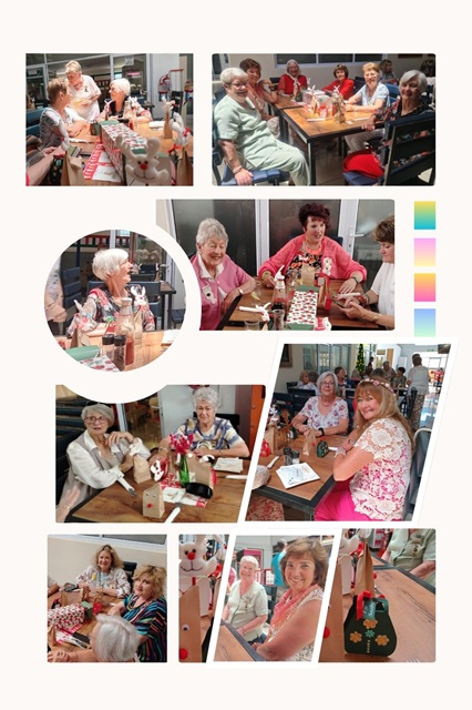 Die tafels was pragtig versier en elkeen het ‘n takboksakkie ontvang en die geldbydrae in die oulikste pakkie (ure se werk). Dankie aan al die gewillige hande wat hiermee gehelp het. Daar was ‘n gelukkige trekking, ‘n lappop, nog ‘n samewerkingsprojek. Die wenner was die persoon met die groen plakker onder haar glas, en die gelukkige persoon was: Petro. Ria is geluk gewens met haar 80ste verjaarsdag en het ‘n orgidee van die tak ontvang.