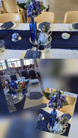 Pragtige tafels wat Blou tema uitbeeld en aan een en elk wys hoe beplan en voer ‘n mens ‘n tema-partytjie uit.