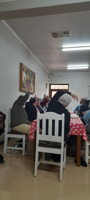 Eerste aan die beurt was Liz-Mari Lubbe. Sy het gepraat oor wat nodig is om hardlywigheid te voorkom en afgesluit met ‘n paar oefeninge wat sit-sit gedoen kan word. Almal het saam geoefen en dit geniet.