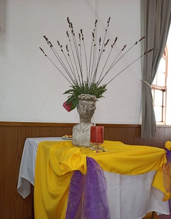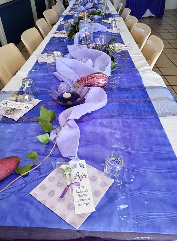 Chairlady table with the Peace Candle, which was lit by our oldest member, Rona Nel