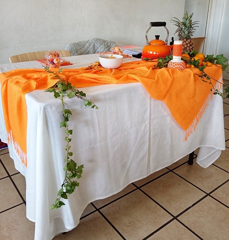 June is the start of the citrus months where we see oranges being stocked in the shops. Public Affairs chose orange for their gathering which brought happiness, brightness and flamboyancy to the room. The tables were decorated with orange tea towels and sweets as gifts.