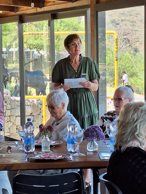 VLV Voëlvlei se afsluiting is vanjaar vir ‘n tweede keer by Bon Game onder die drie brûe oor die Gouritsrivier gehou. Die restaurant se tafels was vrolik gedek en die dames het van die intrapslag af met groot opgewondenheid gesels en gekuier. Die lede is deur Andrieshia Radyn verwelkom, waarna Aletta Janse van Rensburg die byeenkoms geopen het.