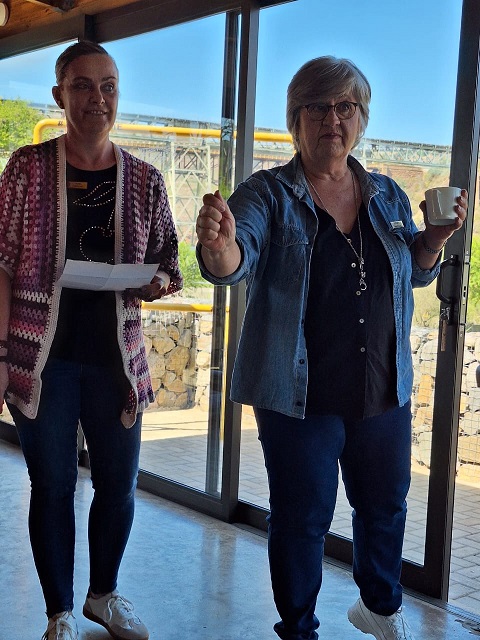 Dames wat elke byeenkoms getrou bygewoon het, is met ‘n spesiale teelepel beloon, en die dames wat Voëlvlei se wiele laat aanhou rol, is met pragtige Wonky Ware-bakkies vol heerlike sjokolade bedank vir hulle bydraes. diegene wat tyd in die kombuis by die Cooper-veilingskrale deurgebring het, is met ‘n verrasingskoevertjie bederf.