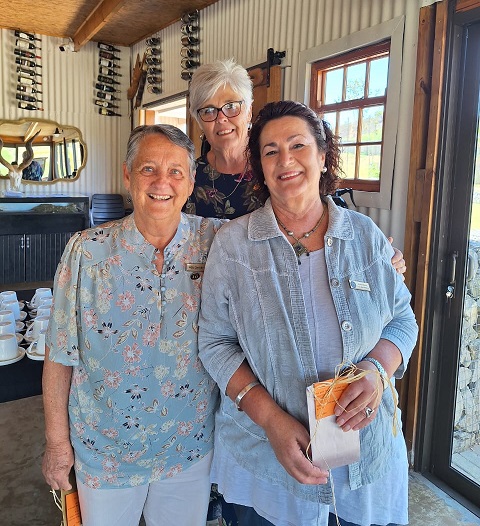 Betsie Muller het haar 40 jaar-kenteken ontvang, terwyl Ada Gericke en Veronica van Rooijen se 10 jaar-kentekens aan hulle oorhandig is.