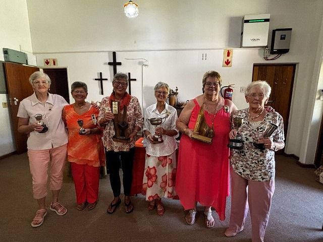 Op die foto verskyn: Linda Duraan-Kookkuns, Emsie Stander- Borduurwerk, Nanette Stanley: Handwerk en Woordkuns, Annalene van Niekerk: Trofee vir tak met meeste punte behaal, Jo Mclarin- Kuns, Amelia du Plesis – VLV lid van die jaar.